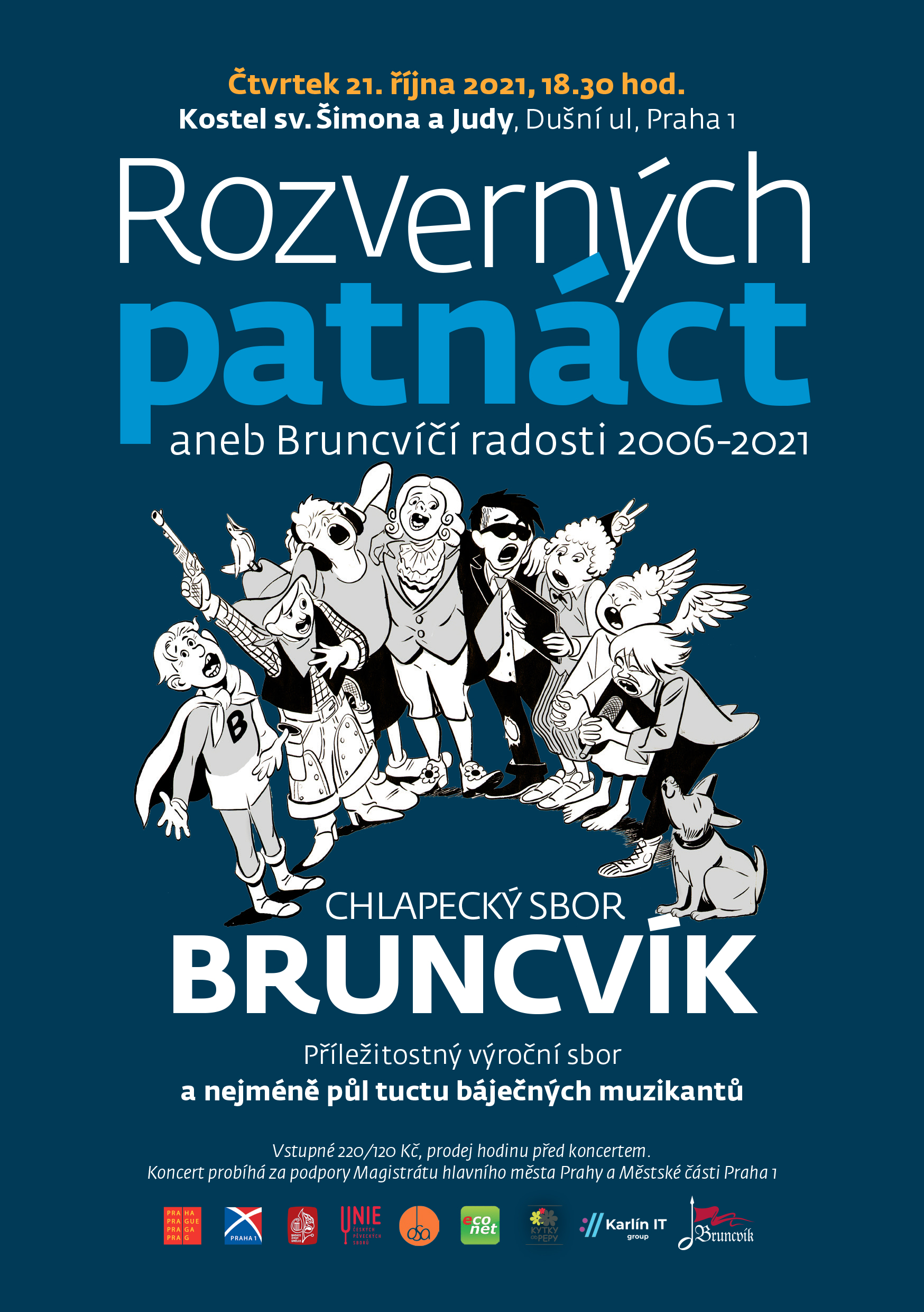 aneb Bruncvíčí radosti 2006 - 2021. Naši milí příznivci, Bruncvík letos dosáhl 15 let a oslaví to velkým koncertem 21.10.2021 v kostele sv. Šimona a Judy, Dušní, Praha 1., v 18.30 hod. Těšíme se, že toto krásné jubileum oslavíte s námi.